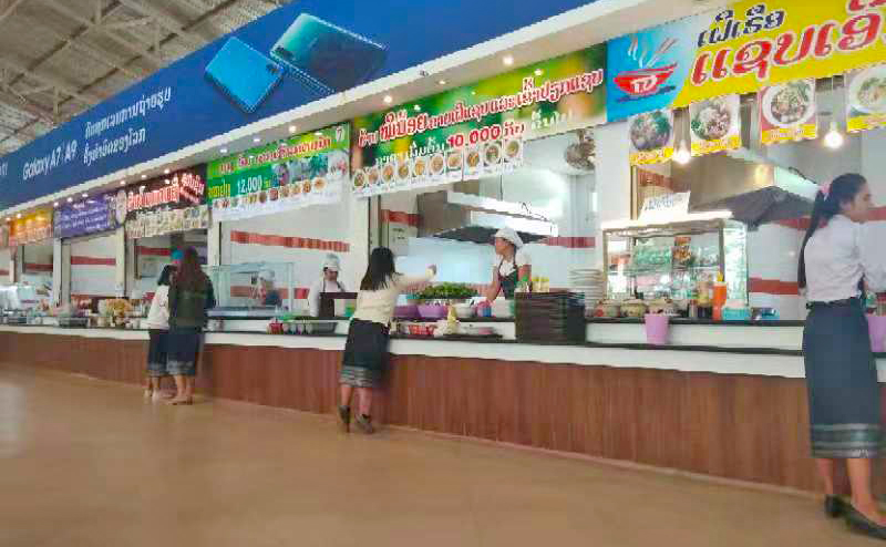 不同的食物由不同的窗口售賣(mài),當(dāng)然打飯的窗口跟中國(guó)“玻璃窗后的阿姨似乎總有點(diǎn)手抖”不同,老撾國(guó)立大學(xué)的食堂窗口更像展會(huì)現(xiàn)場(chǎng)的攤位,制服統(tǒng)一的阿姨笑容滿面地等待你的到來(lái)。