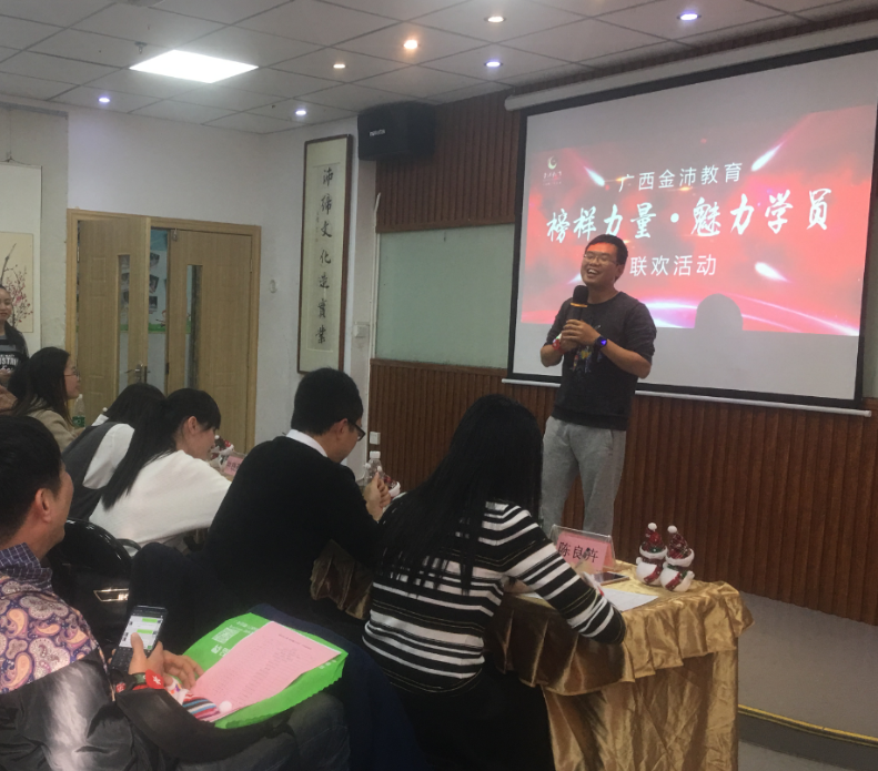 本次活動由廣西金沛教育發(fā)展有限公司南湖校區(qū)主辦,旨在通過本次的匯報演講,促進學員交流。金沛教育領導及金沛高級教師到現(xiàn)場觀摩了學員的演講,并為獲獎選手頒獎。