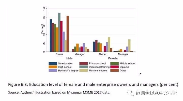 圖說:中小企業(yè)管理人員受教育水平及性別(來源:2017緬甸中小企業(yè)環(huán)境調(diào)查)。