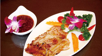 老撾多河流,自然產好魚,這里的魚個大柔嫩還鮮美多汁。當地人最喜歡將這種扁魚烤著吃。而且烤的方法很獨特,把魚內臟去凈后塞上一把新鮮的檸檬草。不但去腥,還讓魚平添一份檸檬的清香。最地道的老撾烤魚吃法是用生的綠菜葉子包裹著涼米粉、生茄子和蘸著調料的魚肉包一個大包,一口吞到嘴里,非常鮮嫩爽口。