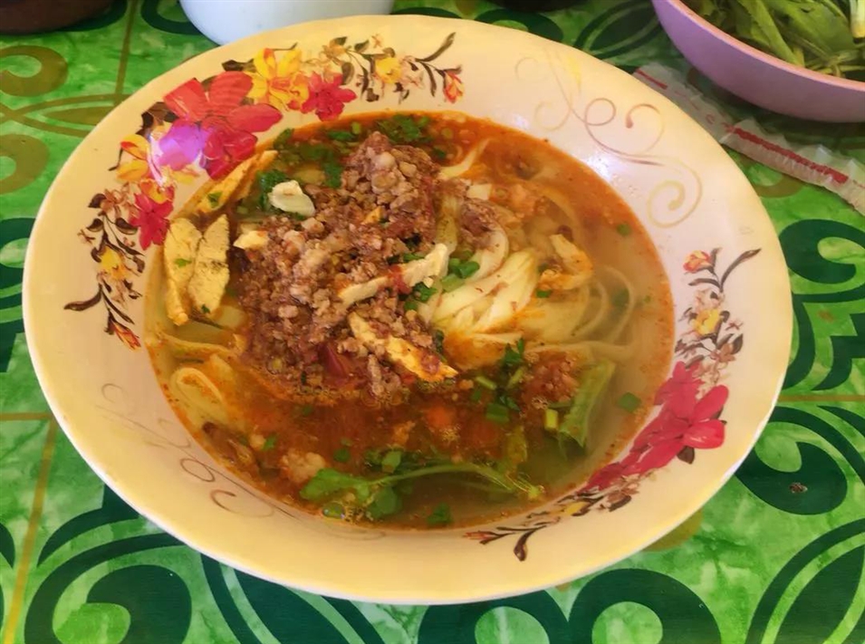 老撾語叫fer,基本跟中文里的“粉兒”發(fā)音一樣,是老撾的標準餐食,早中晚都可以吃到,分米粉和黃面條,英文統稱Noodle soup,湯汁非常鮮美,搭配一些雞肉、牛肉或者豬肉,同時再另配一盤由豇豆、卷心菜、薄荷葉、紫蘇葉構成的純生菜,食客可以根據自己的口味加魚露、青檸汁、干辣椒或是泰式辣椒醬,味道極佳。