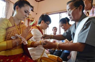 與中國(guó)不同,老撾流行“倒插門(mén)”,即男方主動(dòng)到女方家里做上門(mén)女婿。婚禮也是由女方家操辦,這與老撾女性的社會(huì)地位日益提高息息相關(guān)。