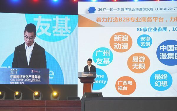 12月13日,中國(guó)—東盟博覽會(huì)秘書(shū)處在2017中國(guó)網(wǎng)絡(luò)文化產(chǎn)業(yè)年會(huì)游戲論壇上現(xiàn)場(chǎng)推介2018中國(guó)—東盟博覽會(huì)動(dòng)漫游戲展,中國(guó)動(dòng)漫集團(tuán)、武漢市委宣傳部、武漢市文化局、武漢數(shù)字創(chuàng)意與游戲產(chǎn)業(yè)協(xié)會(huì)和中國(guó)—東盟博覽會(huì)秘書(shū)處動(dòng)漫游戲展負(fù)責(zé)人出席了會(huì)議,網(wǎng)易游戲、騰訊公司、觸控科技、樂(lè)競(jìng)文化、愛(ài)奇藝、盛大游戲、蝸牛數(shù)字、亞聯(lián)資本、掌游科級(jí)等動(dòng)漫知名企業(yè)負(fù)責(zé)人到會(huì)交流。