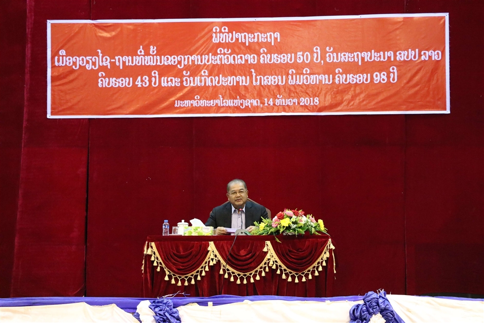 老撾國立大學(xué)領(lǐng)導(dǎo)班子、骨干教師和全體師生參與了本次會議,大家共同收聽了“建立華潘省會曬市革命根據(jù)地50周年”,“老撾人民民主共和國成立43周年”,“主席誕辰地方梵?。ǚ鸾堂~)98周年”等重要講話內(nèi)容,深入學(xué)習(xí)講話精神。