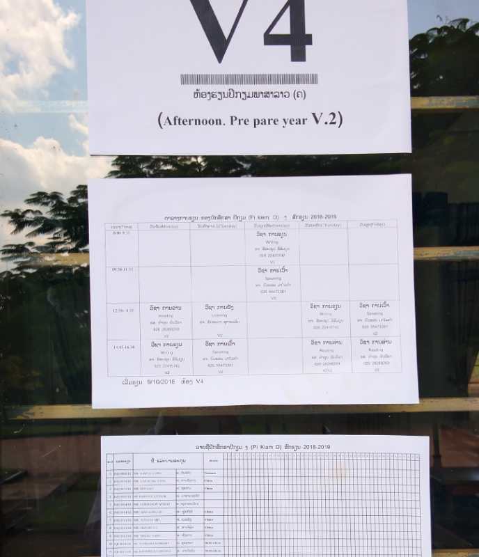 這是V4班的課程表,都是老撾文,所以大家也不用糾結(jié)了,就當(dāng)走個(gè)形式,還是聽小編講解吧~