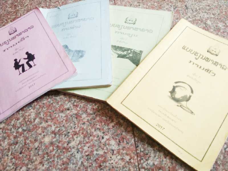 老撾語(yǔ)預(yù)科課程分為聽、說、讀、寫四科,分別由四位老師授課,每科課本分上下冊(cè),各科的上課時(shí)間均為一個(gè)半小時(shí),對(duì),是連上一個(gè)半小時(shí),中間沒有休息時(shí)間,跟國(guó)內(nèi)每節(jié)課45分鐘中間穿插10分鐘休息時(shí)間的模式還是有點(diǎn)差別的,不過授課時(shí)間跟國(guó)內(nèi)是一樣的,周一至周五。