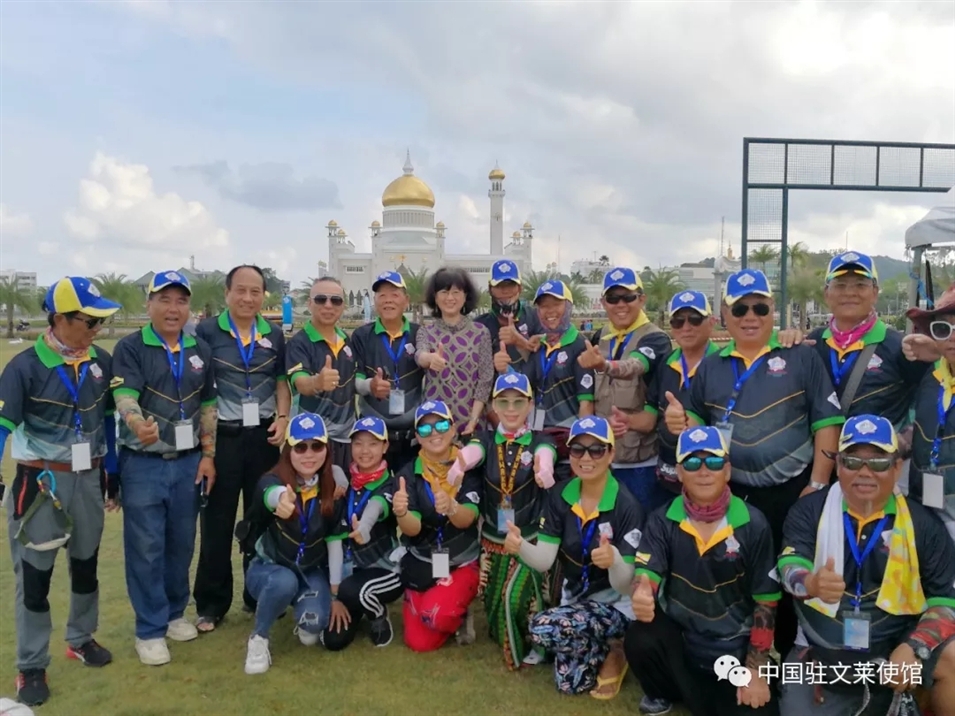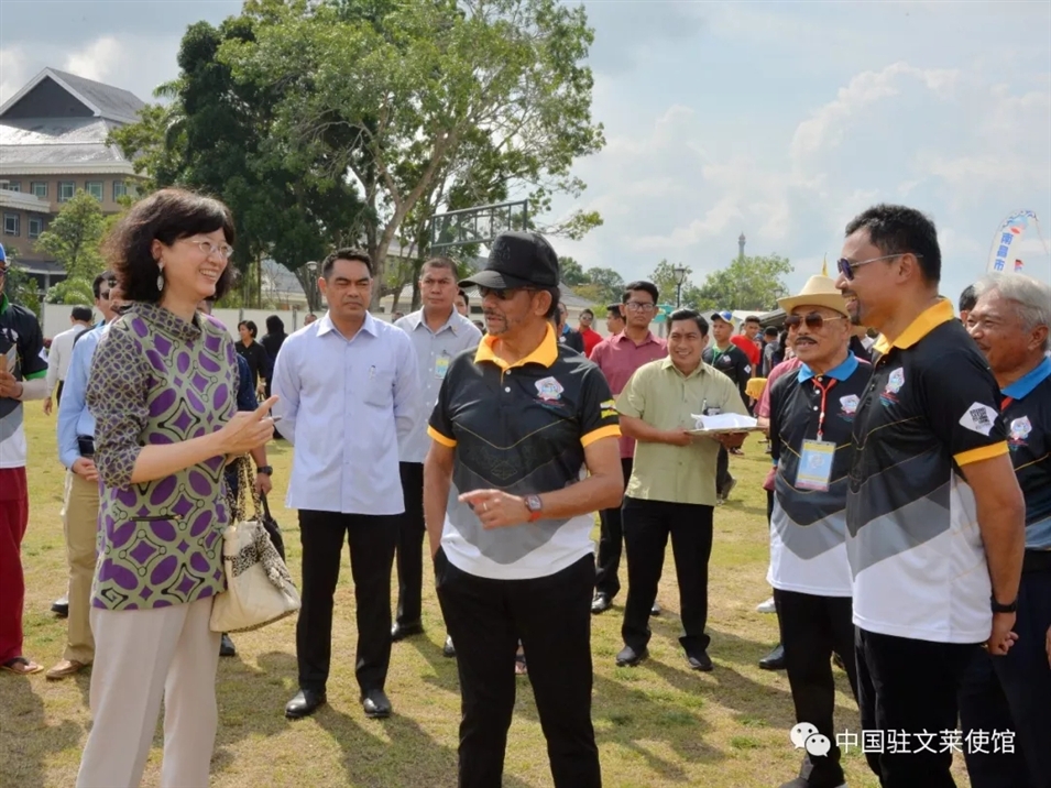 3月17日,于紅大使應(yīng)邀出席文萊首屆國際風(fēng)箏節(jié)開幕式。于紅大使在開幕式前看望中國選手,為他們加油鼓勁。于紅大使還陪同文萊蘇丹、王儲等王室成員和中國選手交流。