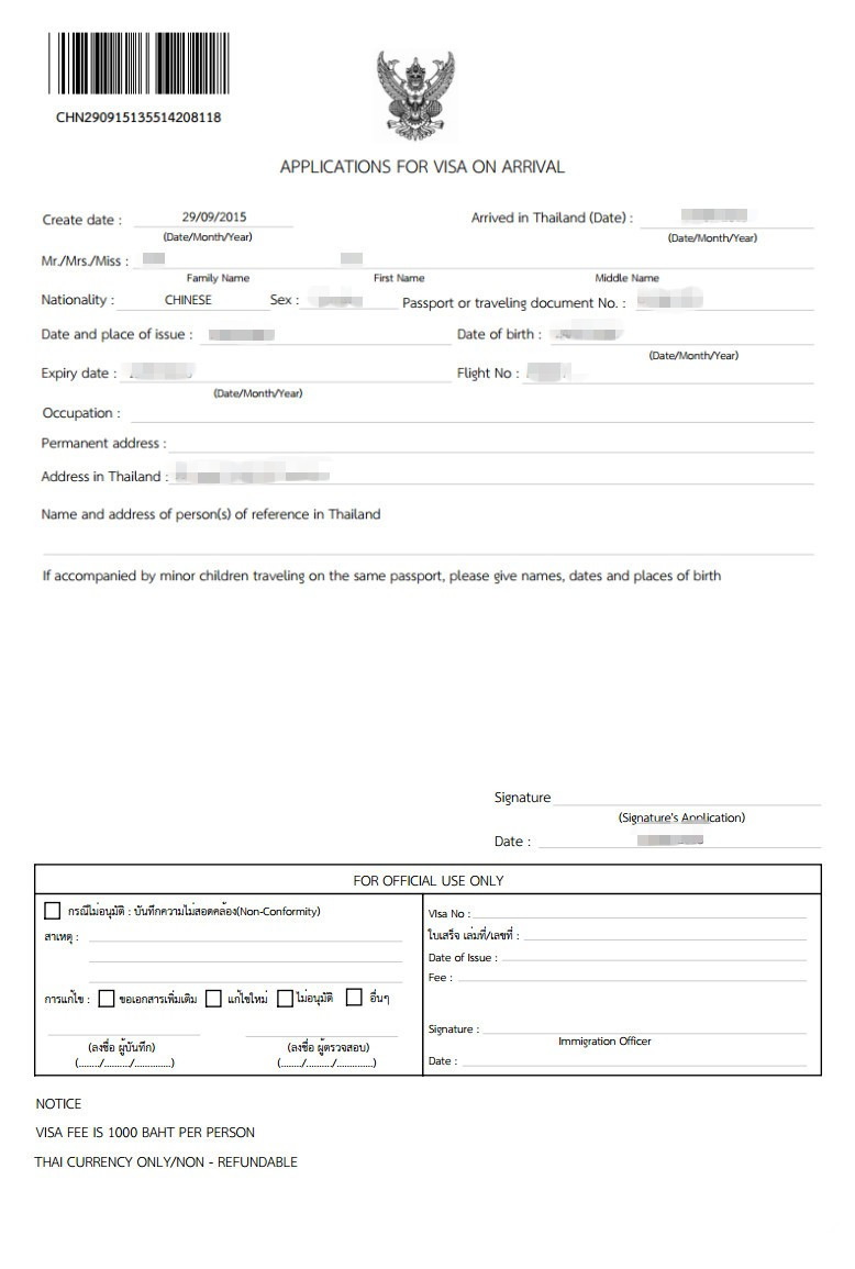 游客只需在填寫完成后將此在線表格打印出來,連同相關(guān)落地簽基本文件一同在泰國各國際機(jī)場落地簽柜臺(tái)辦理手續(xù)即可入境。