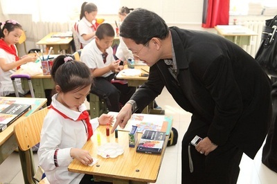 11月18日,泰國(guó)孔敬大學(xué)孔子學(xué)院舉行年度第四次YCT中小學(xué)漢語考試, 5012名考生同時(shí)參加考試,創(chuàng)下單次考生人數(shù)全泰第一。隨著“一帶一路”建設(shè)的推進(jìn),泰國(guó)“漢語熱”持續(xù)升溫。圖為孔敬大學(xué)附小考場(chǎng)內(nèi)監(jiān)考老師在細(xì)心指導(dǎo)小學(xué)生