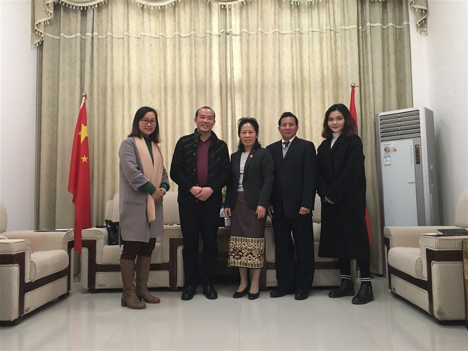 2018年1月10日上午,廣西金沛教育執(zhí)行董事粟宥朝先生、校長張金雪女士、新媒體中心韋文靜女士一行訪問老撾人民民主共和國駐南寧總領(lǐng)事館,受到總領(lǐng)事萬?!ぞS麗雅彭女士、副領(lǐng)事坎平·蘇立亞翁先生的熱情接待。